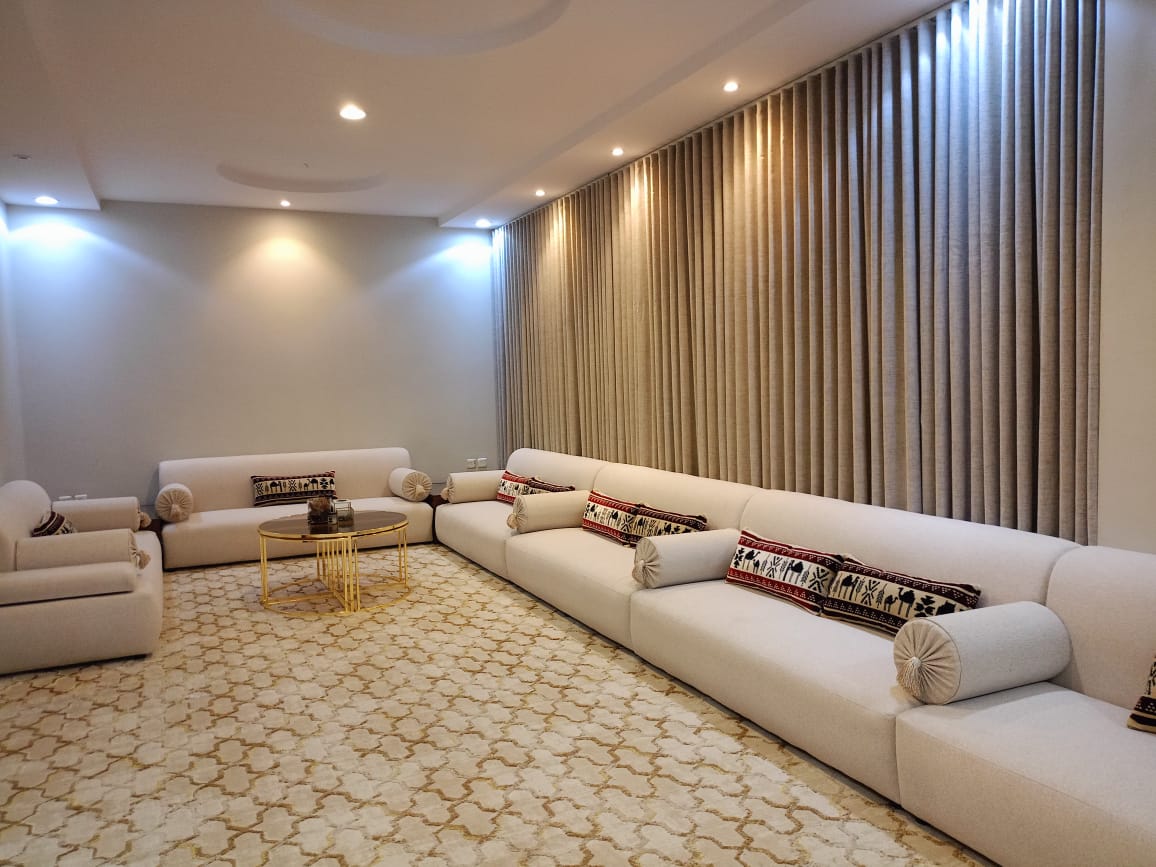 نستخدم أقمشة عالية الجودة مثل المخمل، القطيفة، والحرير الصناعي، مما يمنح الكنب شكلًا متينًا وجذابًا.